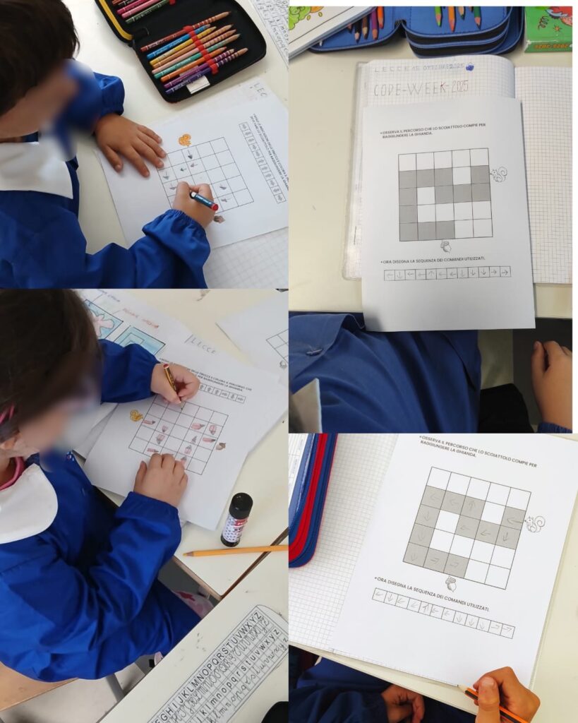 Gli alunni della 1^e 2^ del plesso di Frigole hanno svolto un’attività di coding unplugged: “programmano” con le frecce lo scoiattolo per raggiungere la ghianda.