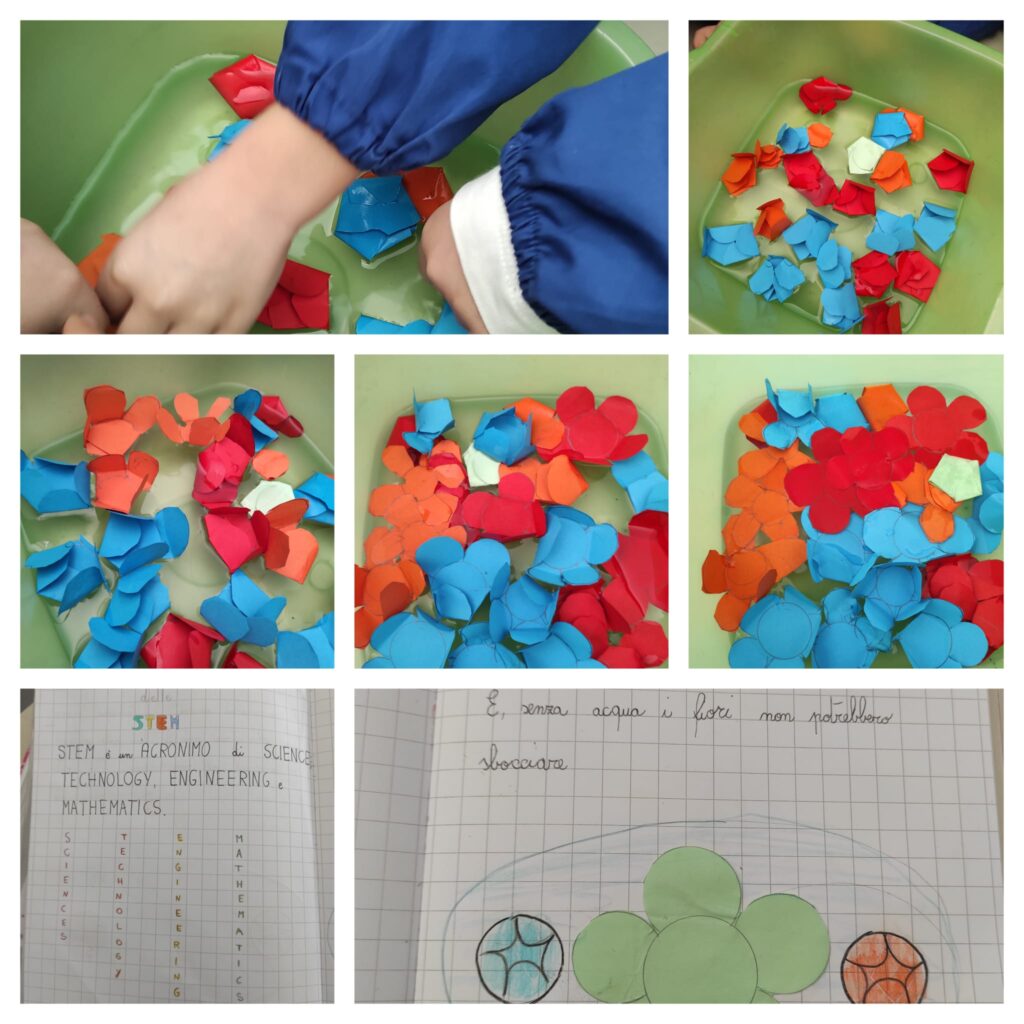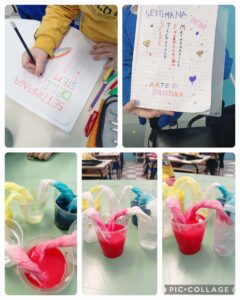 I bambini hanno sperimentato le fasi del ciclo dell’acqua, i fenomeni che lo caratterizzano e constatato l’influenza del cambio di temperatura sui passaggi di stato della materia. L’esperimento ha favorito il consolidamento degli apprendimenti e il lavoro di gruppo nella realizzazione degli elementi necessari all’attività.