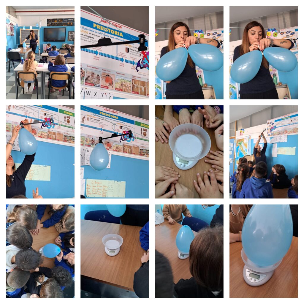 Gli alunni con una serie di esperimenti dimostrano che l’aria non ha una forma propria, ma occupa uno spazio, ha un peso, si lascia comprimere, è elastica, esercita una forza. Inoltre gli esperimenti fatti,permettono di dimostrare, attraverso il metodo scientifico sperimentale che anche se non sembra,l’ aria ha un peso, un volume e occupa uno spazio.