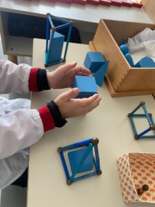 La costruzione dei solidi. Gli alunni attraverso pasta modellabile e stuzzicadenti hanno riprodotto lo scheletro del cubo analizzando gli elementi e le caratteristiche delle figure solide.