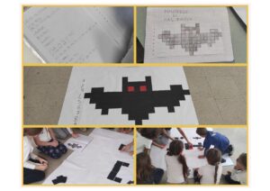 Gli alunni dopo aver individuato il codice si sono impegnati nel realizzarlo in tabella. Successivamente l’attività è stata organizzata per riprodurre l’attività mediante l’uso dei pixel-blocks.
