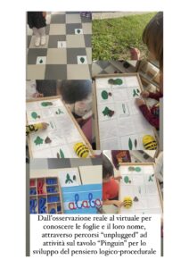 Attività di “robotica educativa” nella sez. Montessori di Via Romagna sul tavolo interattivo Pinguin ribaltato , per l’utilizzo di percorso strutturato in relazione alla cassettiera delle foglie.
