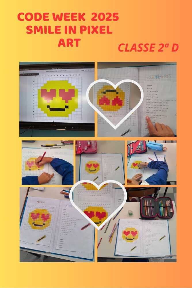 La 2^ D ha celebrato la settimana europea della Code Week 2025, svolgendo delle attività di Pixel art. Gli alunni sono stati guidati da un codice scritto in inglese nella comprensione del procedimento che conduce alla rappresentazione di uno smile.