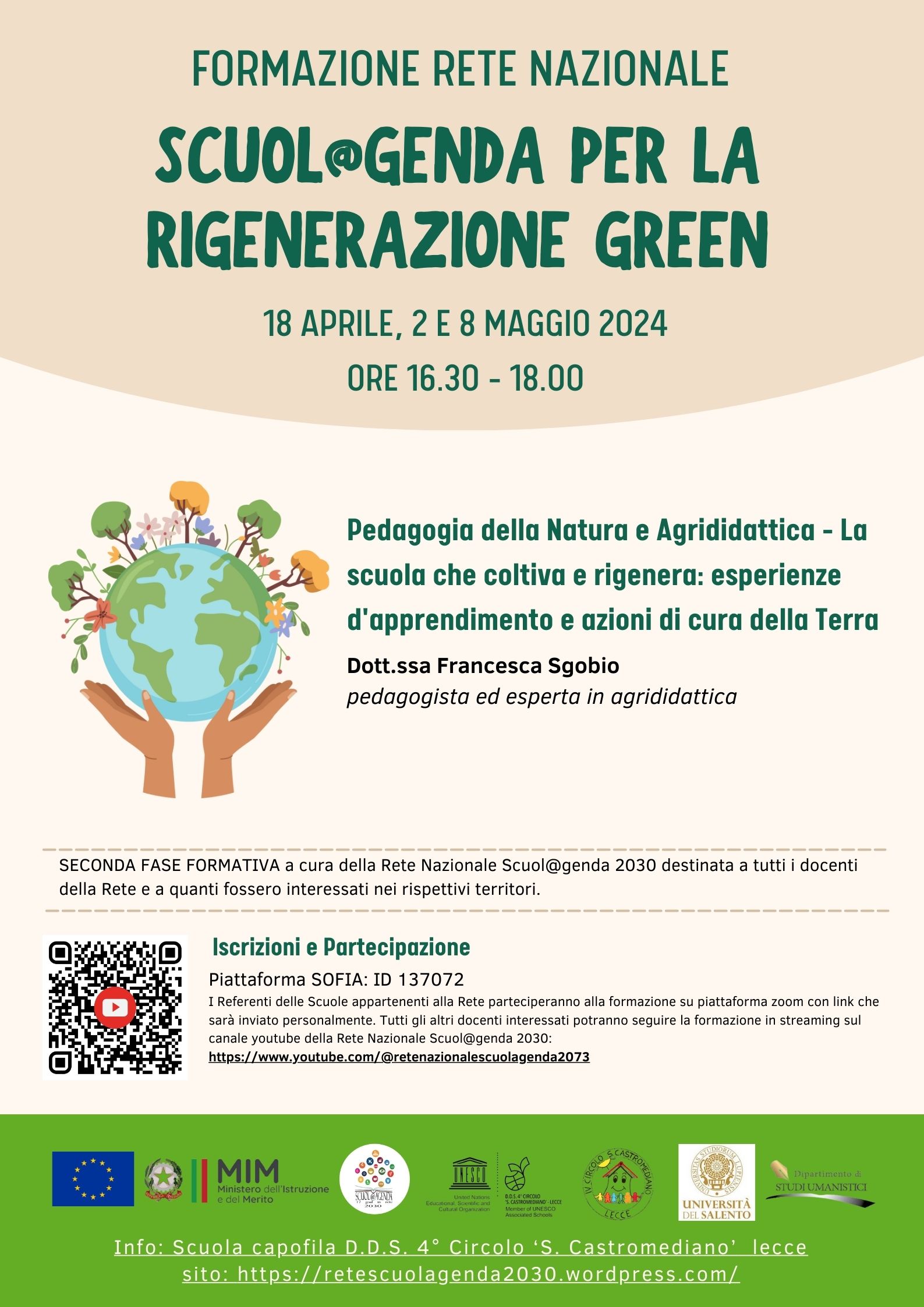 I Referenti delle Scuole appartenenti alla Rete parteciperanno alla formazione su piattaforma zoom con link che sarà inviato personalmente. Tutti gli altri docenti interessati potranno seguire la formazione in streaming sul canale youtube della Rete Nazionale Scuol@genda 2030: