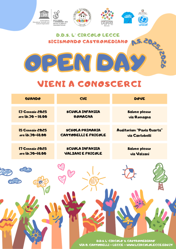OpenDay per le iscrizioni di Scuola Primaria e di Scuola dell’Infanzia per l’a.s. 2025/2026.