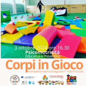Psicomotricità educativa e preventiva: incontro con i docenti delle classi prime e seconde Giovedì 3 ottobre 2024 ore 16.30