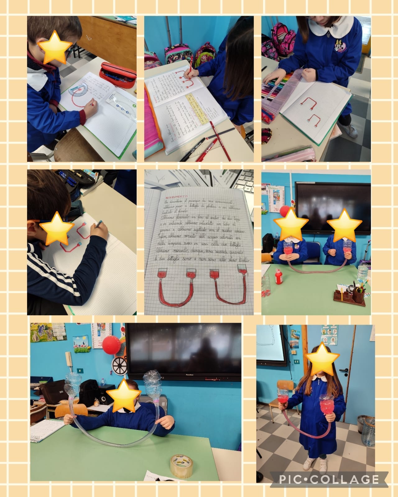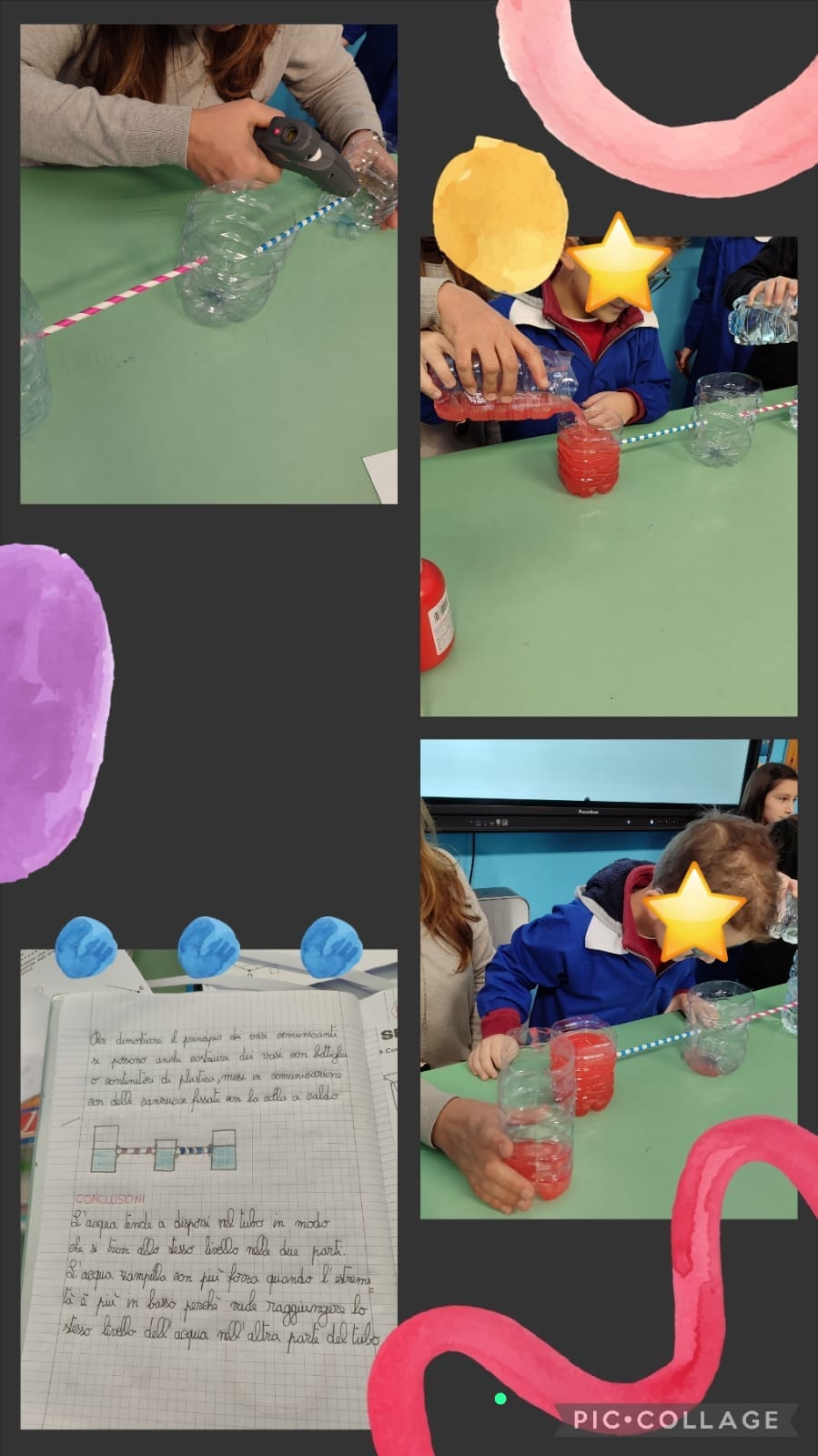 Per dimostrare il principio dei vasi comunicanti si possono costruire vasi anche con bottiglie di plastica collegate tra loro con cannucce inserite in fori e successivamente sigillate con della colla a caldo.