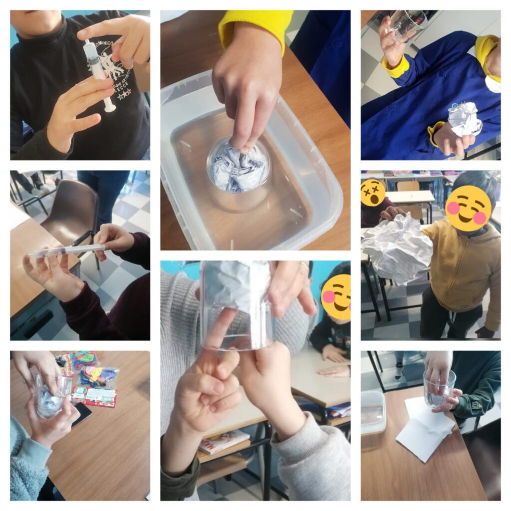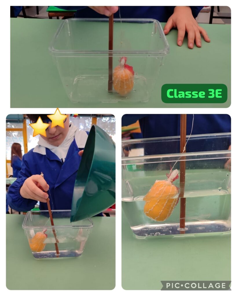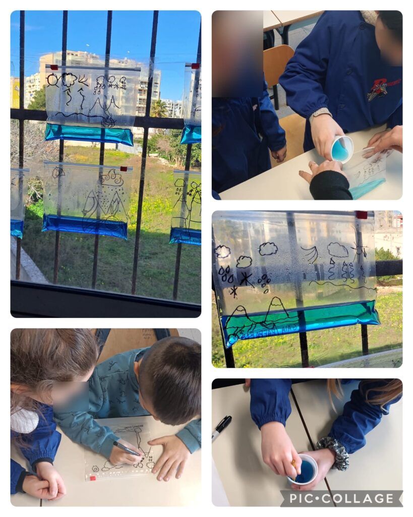 I bambini hanno sperimentato le fasi del ciclo dell’acqua, i fenomeni che lo caratterizzano e constatato l’influenza del cambio di temperatura sui passaggi di stato della materia. L’esperimento ha favorito il consolidamento degli apprendimenti e il lavoro di gruppo nella realizzazione degli elementi necessari all’attività.